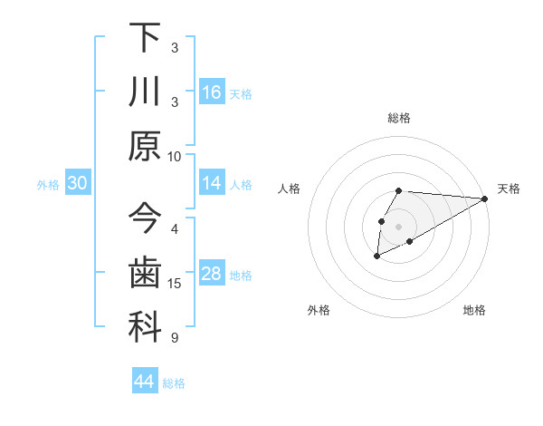 下川原 今歯科さんの総格は44画の2点!