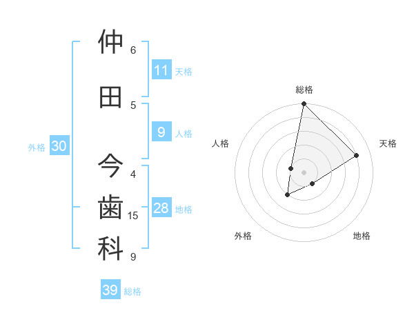 仲田 今歯科さんの総格は39画の5点!