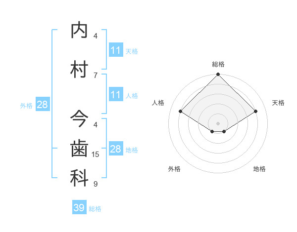 内村 今歯科さんの総格は39画の5点!