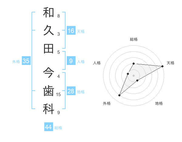 和久田 今歯科さんを姓名の画数から五運を鑑定