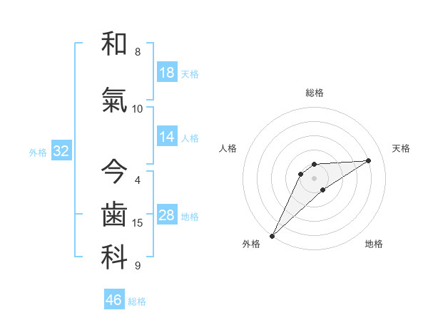 和氣 今歯科さんの総格は46画の1点!