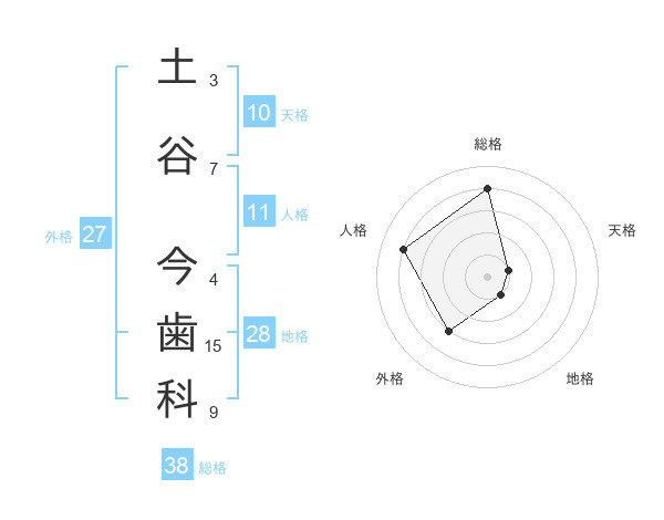 土谷 今歯科さんを姓名の画数から五運を鑑定