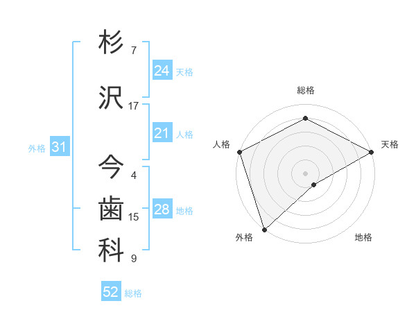 杉沢 今歯科さんを姓名の画数から五運を鑑定