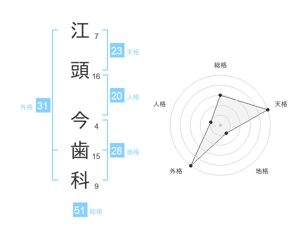 江頭 今歯科さんの総格は51画の3点!