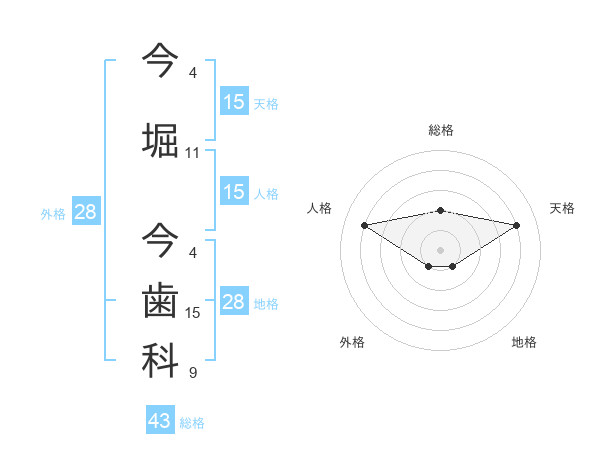 今堀 今歯科さんを姓名の画数から五運を鑑定