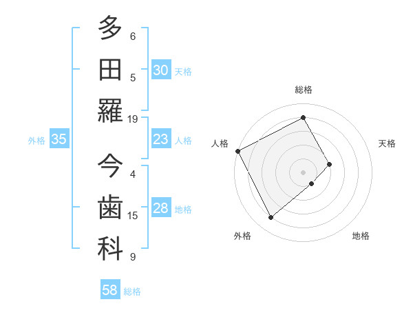 多田羅 今歯科さんを姓名の画数から五運を鑑定