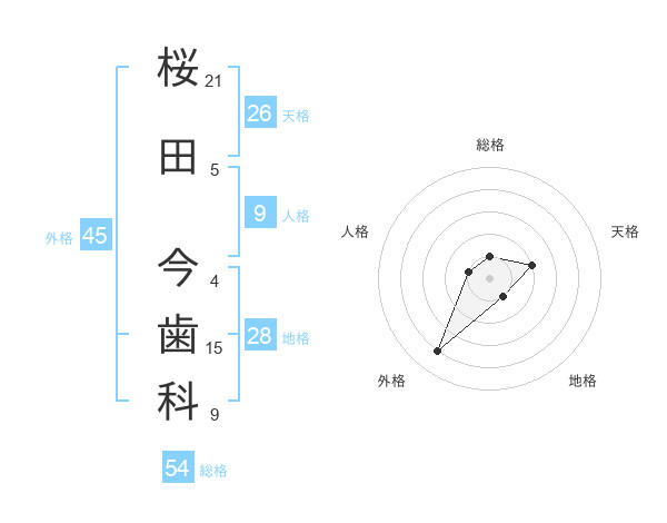 桜田 今歯科さんを姓名の画数から五運を鑑定