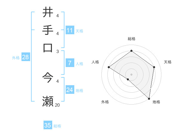 井手口 今瀬さんの総格は35画の4点!