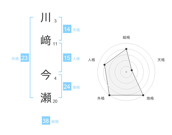 川﨑 今瀬さんを姓名の画数から五運を鑑定