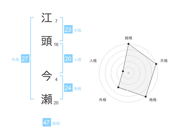 江頭 今瀬さんを姓名の画数から五運を鑑定