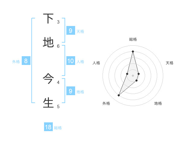 下地 今生さんの総格は18画の4点!