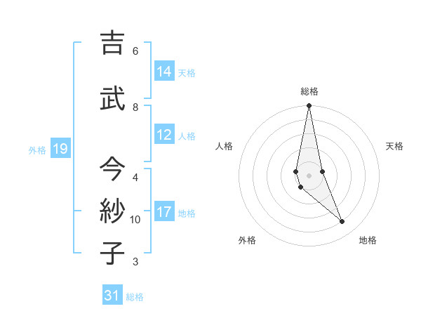 吉武 今紗子さんの総格は31画の5点!