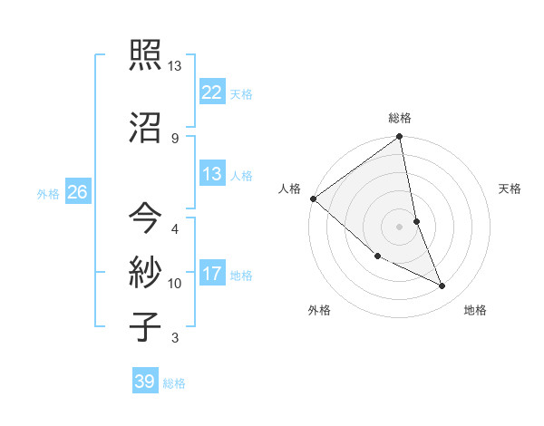 照沼 今紗子さんを姓名の画数から五運を鑑定