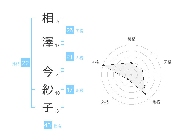 相澤 今紗子さんを姓名の画数から五運を鑑定