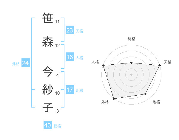 笹森 今紗子さんの総格は40画の2点