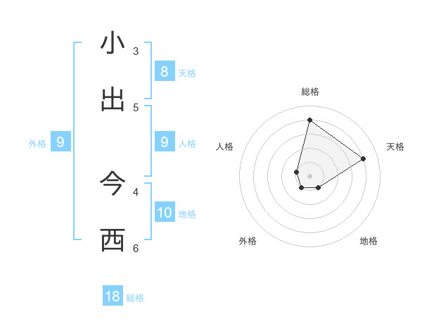 小出 今西さんの総格は18画の4点!