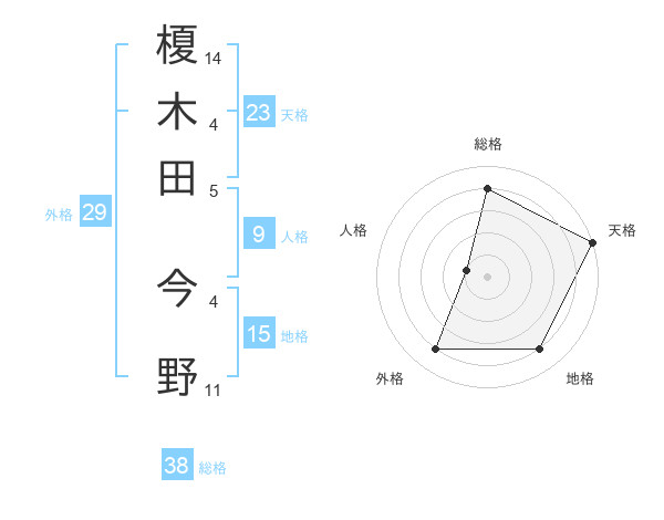 榎木田 今野さんの総格は38画の4点!