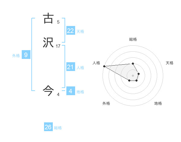 古沢 今さんの総格は26画の2点!