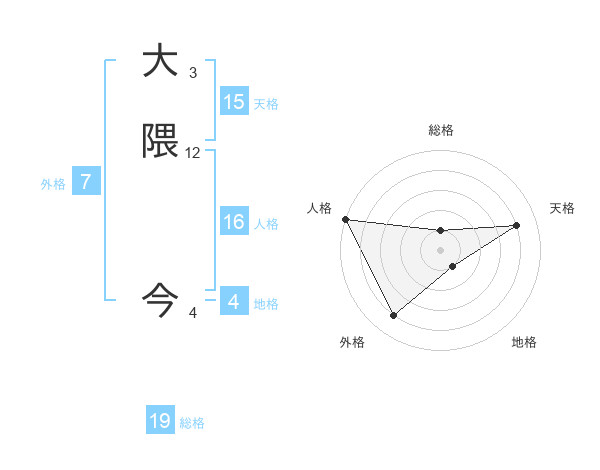 大隈 今さんの総格は19画の1点!