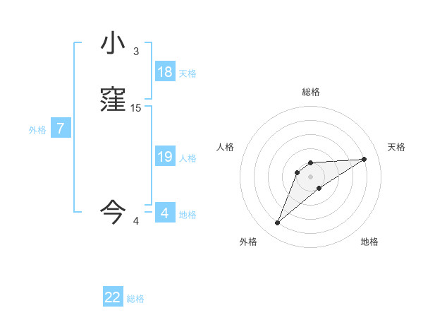 小窪 今さんの総格は22画の1点!