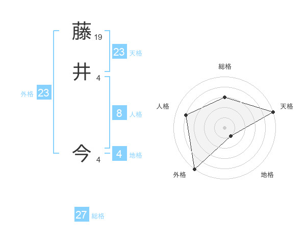 藤井 今さんの外格は23画の5点!