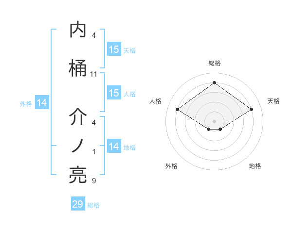 内桶 介ノ亮さんを姓名の画数から五運を鑑定