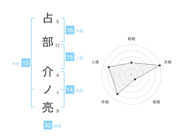 占部 介ノ亮さんを姓名の画数から五運を鑑定