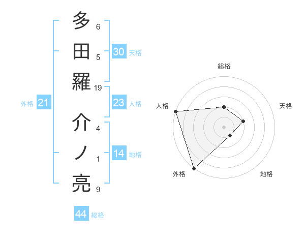 多田羅 介ノ亮さんの総格は44画の2点