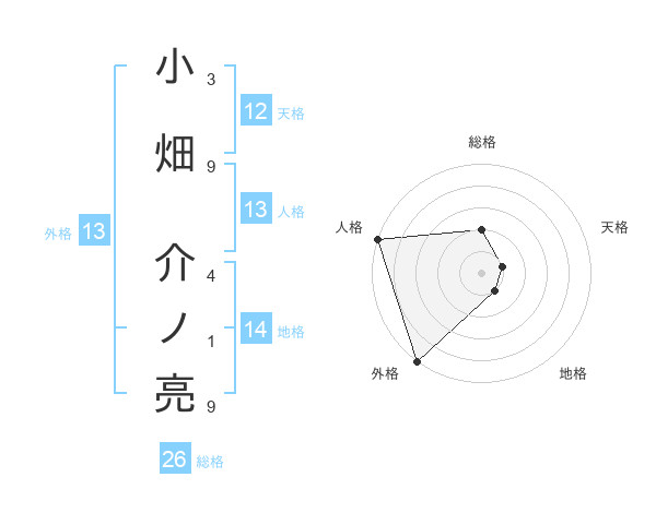 小畑 介ノ亮さんを姓名の画数から五運を鑑定