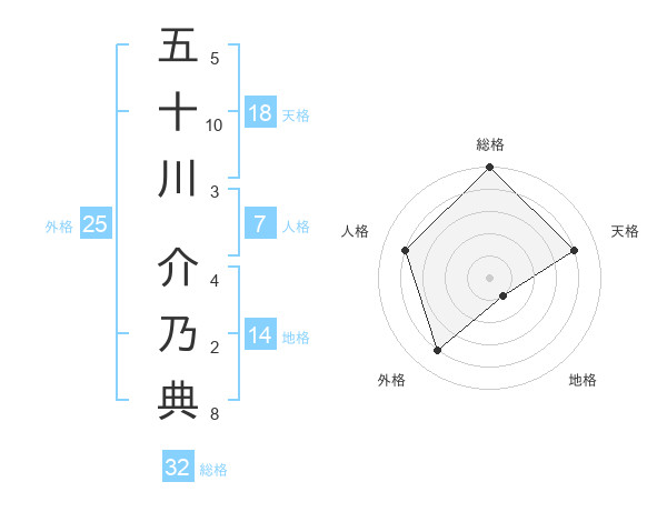 五十川 介乃典さんを姓名の画数から五運を鑑定