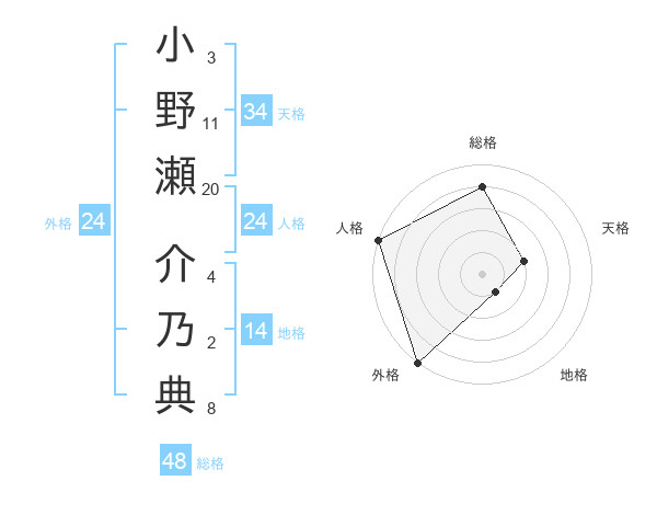 小野瀬 介乃典さんを姓名の画数から五運を鑑定