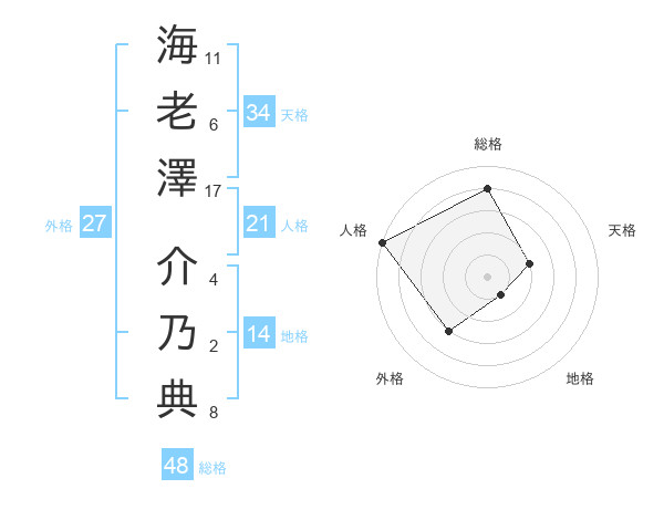 海老澤 介乃典さんの総格は48画の4点!