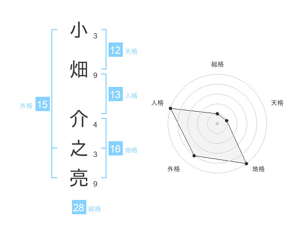 小畑 介之亮さんを姓名の画数から五運を鑑定