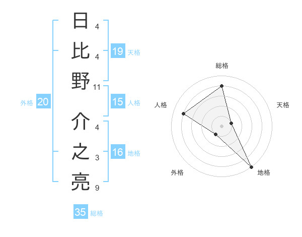 日比野 介之亮さんを姓名の画数から五運を鑑定