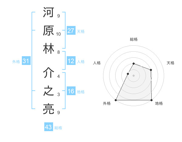 河原林 介之亮さんの外格は31画の5点!