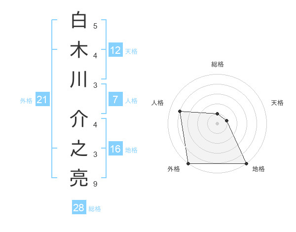 白木川 介之亮さんを姓名の画数から五運を鑑定