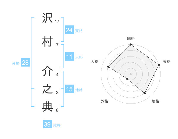 沢村 介之典さんを姓名の画数から五運を鑑定