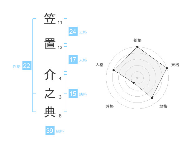 笠置 介之典さんを姓名の画数から五運を鑑定