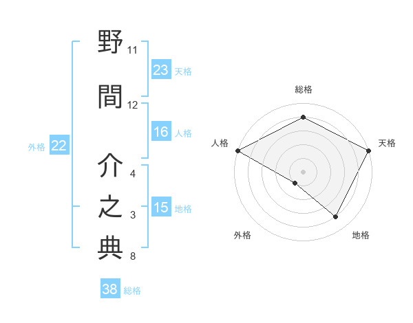 野間 介之典さんの総格は38画の4点