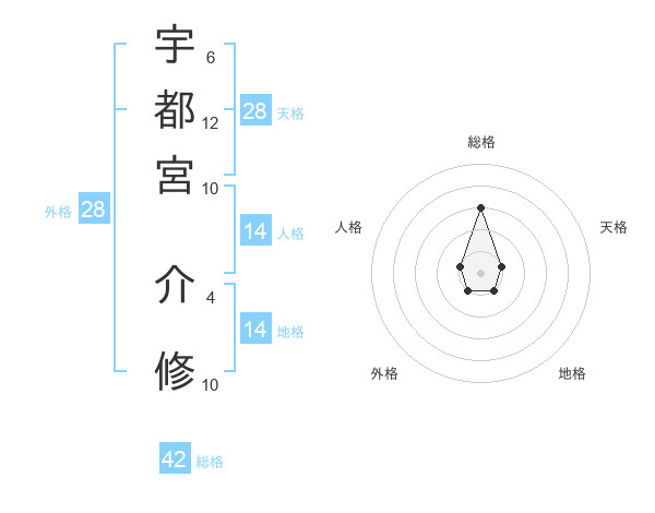 宇都宮 介修さんを姓名の画数から五運を鑑定