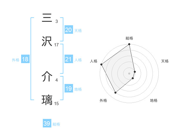 三沢 介璃さんの総格は39画の5点!