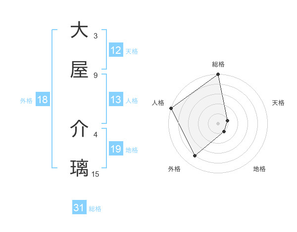 大屋 介璃さんの総格は31画の5点!