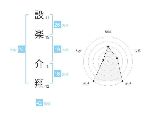 設楽 介翔さんを姓名の画数から五運を鑑定