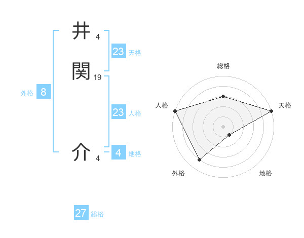 井関 介さんの総格は27画の3点!