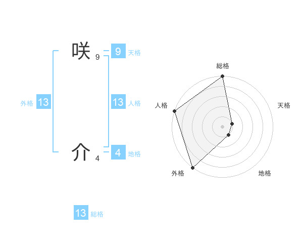 咲 介さんの総格は13画の5点!