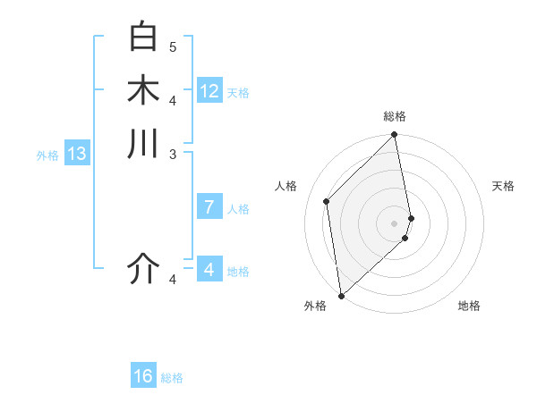 白木川 介さんの外格は13画の5点!
