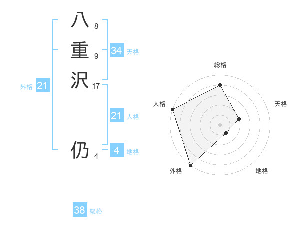八重沢 仍さんの総格は38画の4点!