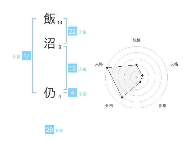 飯沼 仍さんの外格は17画の4点!