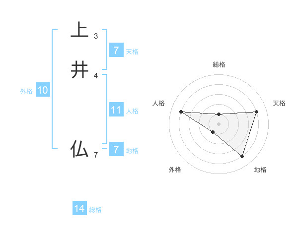 上井 仏さんの天格は7画の4点!