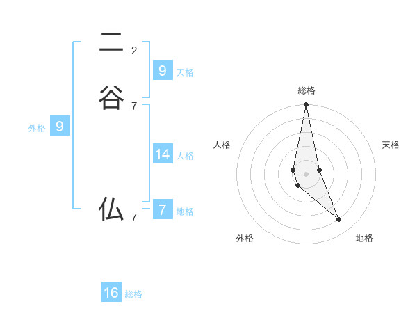 二谷 仏さんの総格は16画の5点!